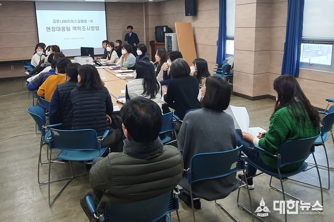 이날 교육은 코로나19 확진자 증가에 대비해 역학조사 준비사항과 역학조사 방법 등 실무적인 내용에 대해 진행됐다.