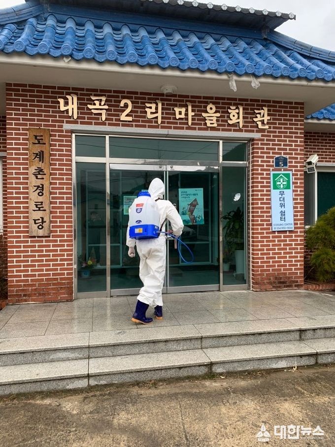 (대한뉴스 김기준 기자)=고령군 대가야읍(읍장 김진수)은 코로나19의 급속한 확산을 차단하고 지역사회 감염을 막기 위해 주민들의 대표적 이용시설인 마을회관, 경로당 등 에 대한 방역 활동과 홍보활동에 총력을 다하고 있다.