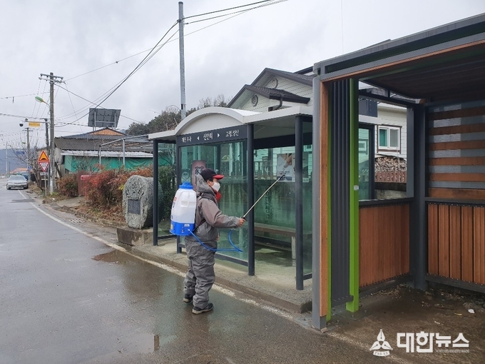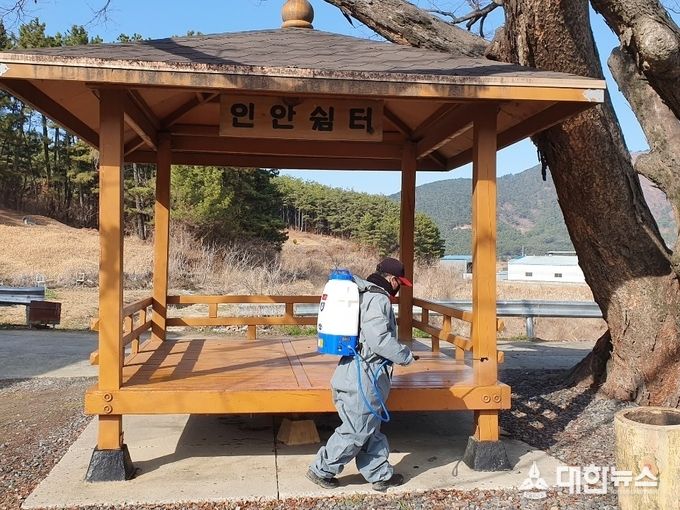 (대한뉴스 김기준 기자)=고령군 개진면(면장 노재창)은 최근 급속도로 확산되는 코로나19 감염증의 차단을 위해 지난 2월 27일(목)부터 사회단체 사무실을 시작으로 종교 시설, 유관기관 등 관내 전 지역에 걸쳐 자체방역을 실시하고 있다.