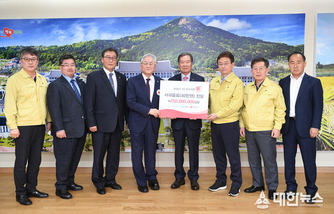 이날 전달된 성금은 도내 확진자 지원, 지역사회 감염확산 차단, 마스크․손세정제, 방호복 등 방역물품을 지원하는데 사용된다.