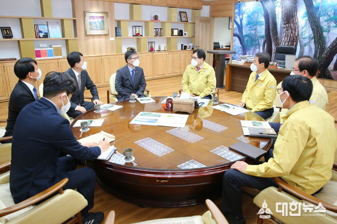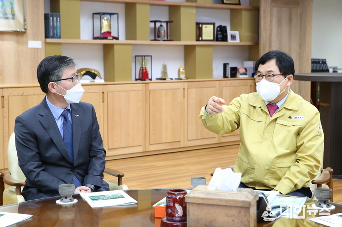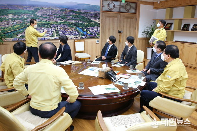 (대한뉴스 김기준 기자)=주낙영 경주시장은 3일 경주시장실에서 LH공사 사장(변창흠)과 경주시 지역발전을 위해 협력 가능한 사업을 모색하기 위한 간담회를 개최했다.