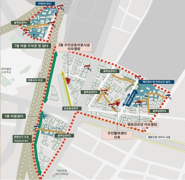 평화지구가 새뜰마을사업에 최종 선정됨에 따라 총사업비 42억중 국비와 도비 33억원을 지원받아 2023년까지 4년간 위험시설물 정비, 철도변 완충녹지조성, 도시가스 인입, 노후 상하수도 정비, 주차장확보, 주민쉼터조성, 주민공동이용시설 신축, 집수리사업, 주민들을 위한 역량강화사업과 휴먼케어 등 총 13개 단위사업이 추진될 계획이다.
