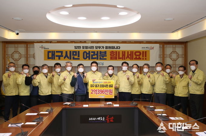 (대한뉴스 김기준 기자)=포항시는 대규모로 확진자가 발생하고 있는 대구를 돕기 위하여 포항시 각계각층에서 모금한 성금 2억1,396여만원을 전달했다.