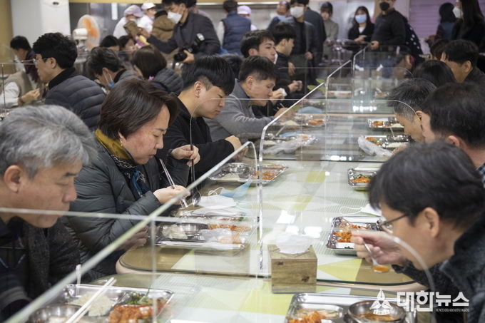 9일 익산시에 따르면 코로나19 예방을 위해 지난주부터 구내식당에 칸막이를 설치해 비대면 식사를 진행하고 있다. 배식할 때에도 개인별로 비닐장갑을 배부해 개인위생 관리에 철저를 기하고 있다.