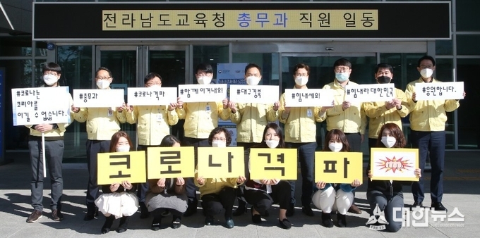 (대한뉴스 박청식 기자)=전라남도교육청은 코로나19 바이러스 감염으로 큰 어려움을 겪고 있는 대구·경북 주민을 돕기 위한 응원 행렬에 동참했다.