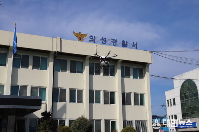 (대한뉴스 김기준 기자)=의성경찰서(서장 김준식)는 지난 6일 코로나19 감염 대비하여 드론을 이용해 의성경찰서 청사 방역 및 소독을 실시했다고 밝혔다.