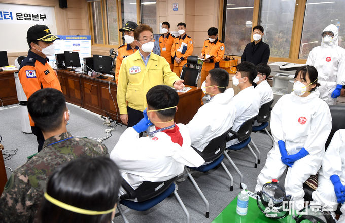 이 지사는 소방학교장으로부터 생활치료센터 운영계획 및 의료지원 준비상황 등을 보고받고 격리실과 의료지원 시설을 둘러보며 환자들이 하루빨리 가족 곁으로 돌아갈 수 있도록 의료지원에 최선을 다해 달라고 당부했다.