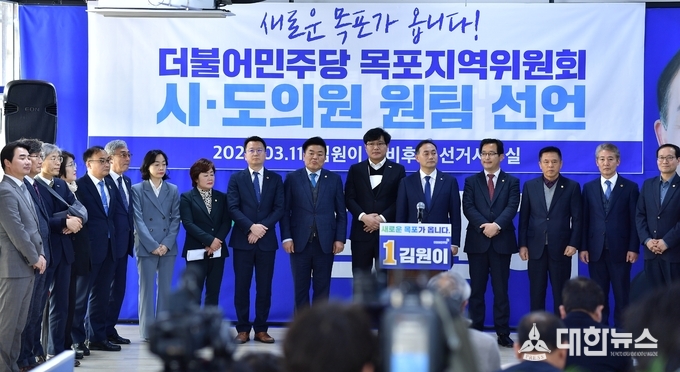 민주당 목포시지역위원회 소속 시도의원들은 11일 오후 김원이 예비후보 선거사무소에서 ‘4·15총선 승리를 위한 시·도의원 원팀 선언’ 기자회견을 열고 총선승리를 다짐했다. 또한 이날 무소속 이재용, 정영수 의원은 민주당 입당 기자회견을 열고 김원이 후보 지지를 선언했다.