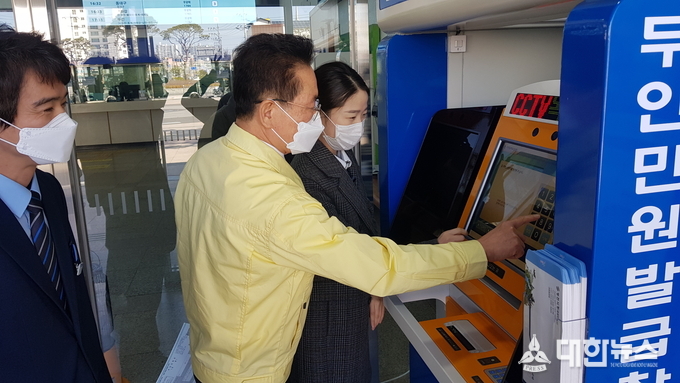 (대한뉴스 김기준 기자)=영천시(시장 최기문)는 10일 시민들에게 더욱 편리한 민원서비스를 제공하기 위해 한국철도공사 대구본부 및 영천역과 협업 하에 경북 최초로 일평균 2,320명(출처: 철도통계연보2018)이 이용하는 영천역사 내에 무인민원발급기를 설치했다.
