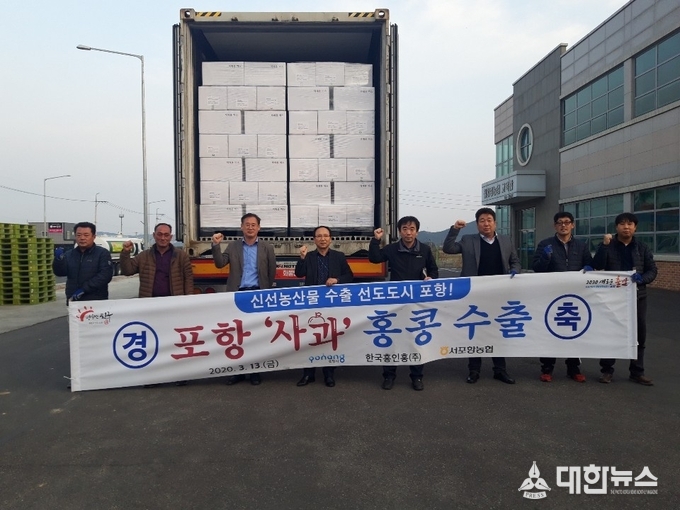 (대한뉴스 김기준 기자)=포항시는 오는 5월까지 포항사과 36톤에 대한 홍콩 수출계약을 성사시켰으며, 13일 1차 수출분 10톤에 대한 상차작업을 마쳤다.