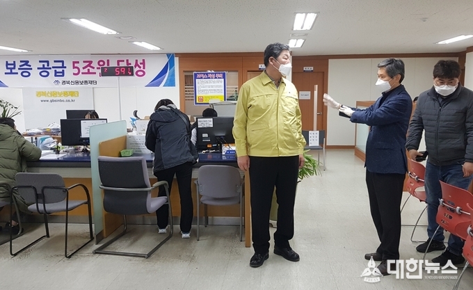 (대한뉴스 김기준 기자)=경상북도의회 장경식 의장은 코로나19로 지역 경제가 극심한 피해를 입게 됨에 따라, 3월 16일(월) 포항에 위치한 경상북도경제진흥원(동부지소) 및 경북신용보증재단(포항지점)을 방문해 경영안정자금 지원 등 추진상황을 점검하고 관계자를 격려했다.