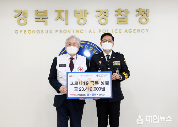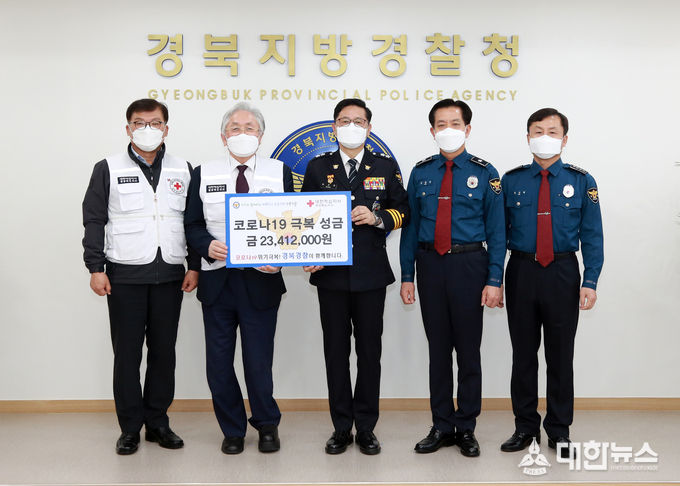 (대한뉴스 김기준 기자)=경북지방경찰청(청장 박건찬)은 지난 17일, ‘코로나19’ 위기 극복을 위해 모은 성금 23,412,000원을 대한적십자사 경북지사에 전달했다.
