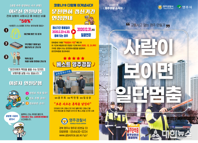 (대한뉴스 김기준 기자)=영주경찰서(서장 류창선)는 코로나19 확진자가 지속적으로 발생하는 사회적 분위기속에서도 시민들의 교통사고 예방을 위해 최선을 다하고 있다.
