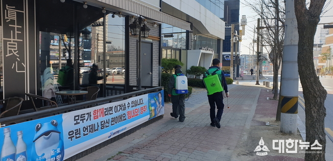 특히 최근 확진자가 발생하고 있는 콜센터, PC방, 노래연습장, 학원, 종교시설 등 다중이용시설 및 집단시설에 중점적으로 방역을 실시하고 건물 출입구, 손잡이, 복도 등을 소독해 ‘코로나19’ 차단 방역에 온 힘을 쏟았다.