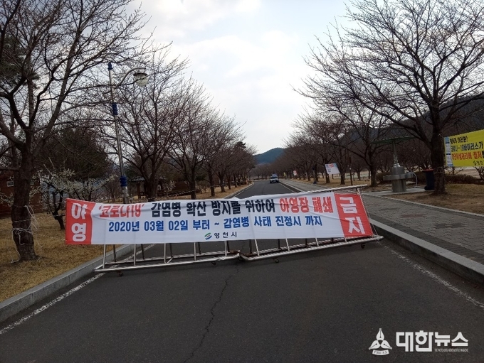 (대한뉴스 김기준 기자)=영천시는 코로나19 감염 확산에 총력 대응하기 위해 야영객들이 많이 찾는 임고강변・영천댐공원을 지난 9일부터 일시 폐쇄했다.