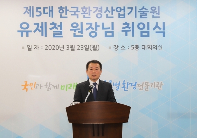 유제철 원장은 취임식에서 전 세계적인 환경문제와 경제위기를 극복하기 위해 임직원들에게 녹색산업 육성에 힘써줄 것을 강조했다. 미세먼지 등 우리 주변의 환경현안 해결을 위해 4차산업 기술과 접목한 융·복합 기술개발에 아낌없이 투자할 것을 당부했다.