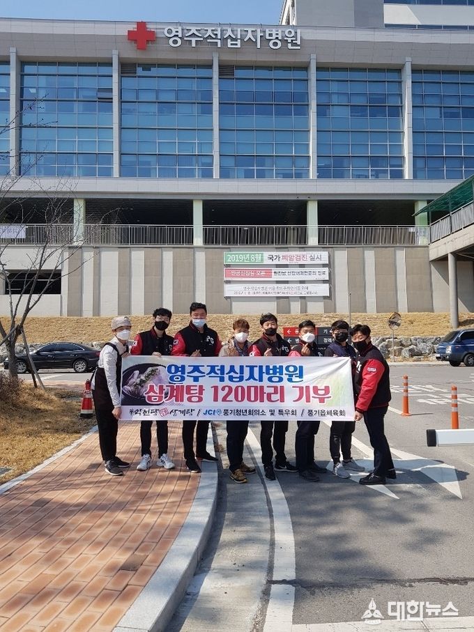 (대한뉴스 김기준 기자)=풍기청년회의소(회장 김훈섭)와 특우회(회장 정재평)는 코로나 바이러스19와 힘겹게 싸우고 있는 확진자와 의료진을 위해 영주적십자 병원을 찾아 보양식인 삼계탕 120 마리를 지원했다.