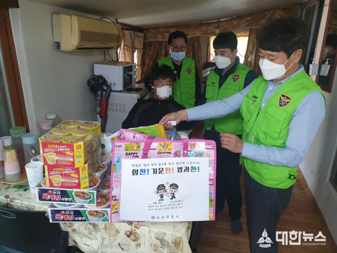이에 학교전담경찰관 및 경찰서 청렴동아리 회원 10여명은 해당 가정(3가정, 8명)에 방문, 식료품·손세정제·마스크 등 생필품을 전달하고 코로나19 예방수칙, 학교폭력 예방 안내문을 배부하는 등 소외가정 및 청소년 비행·범죄 예방도 병행하여 실시하였다.
