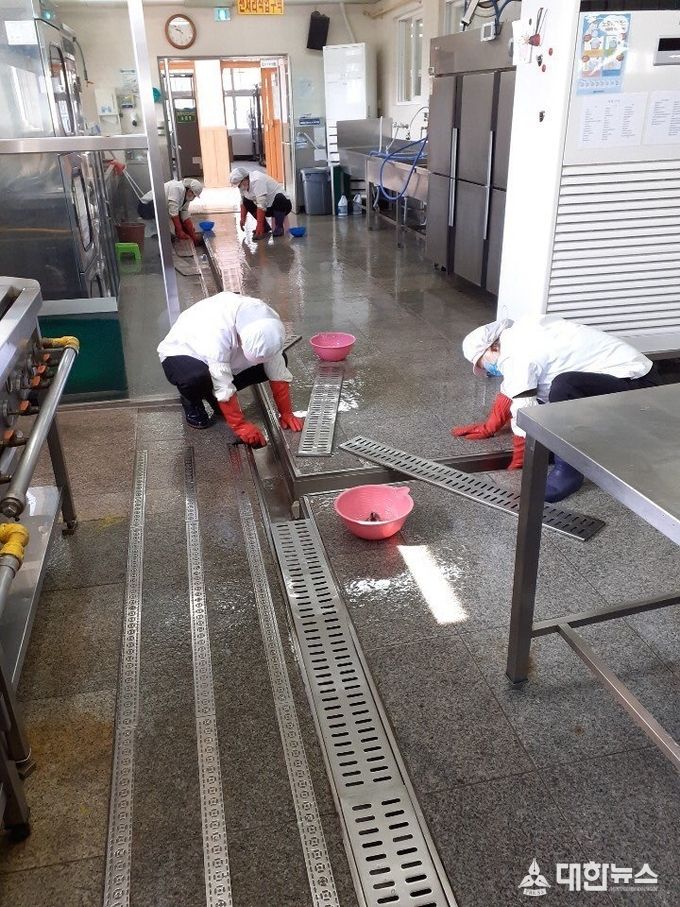 시차급식으로 인한 급식종사자의 연장근무도 가능하며, 개학 전 대청소와 급식실의 정기 방역 외에 추가방역을 하고, 학생 접촉이 빈번한 시설과 기구는 매일 청소와 소독을 하는 등 위생관리를 강화했다.