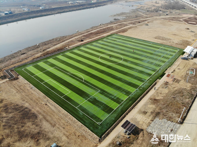 (대한뉴스 김기준 기자)=경산시(시장 최영조)는 하양읍 부호리 금호강변 일원 8,742㎡ 규모의 부지에 총사업비 9억여 원을 투입해 인조잔디 축구장을 지난 3월 23일 준공하였다.