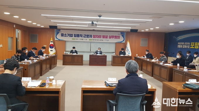 (대한뉴스 김기준 기자)=포항시는 30일 포항시청 소회의실에서 코로나19에 대응하여 ‘중소기업 일용직 근로자 일자리 발굴 실무회의’를 개최했다.