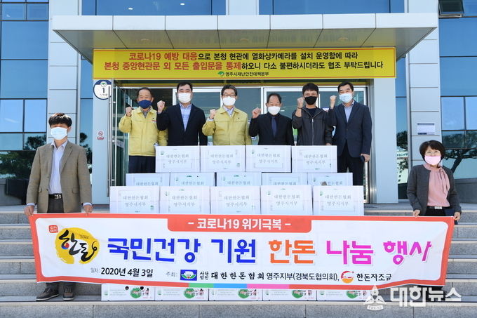 이번 한돈협회 영주시지부의 한돈 나눔은 영주시에서 돼지를 사육하는 한돈 농가들이 기금 등으로 조성한 것으로, 한돈 소비촉진과 함께 특히 ‘코로나19’ 감염병으로 인해 코호트 격리되었던 사회복지시설에 도움을 주기 위해 기탁하게 됐다.