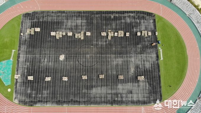 (대한뉴스 박청식 기자)=강진군이 지난 3월 초부터 축구전용 경기장 천연 잔디 교체공사를 추진해 오고 있는 것과 더불어 지난달 31일에는 종합운동장 인조 잔디 교체 공사를 시작했다.