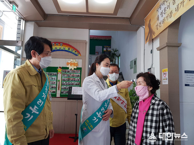 이날 캠페인은 종교시설 입구에서 어깨띠를 착용하고, 마스크 착용, 2m 사회적 간격 유지, 손 씻기·기침 예절 등 개인위생 수칙 준수를 홍보하고, 발열 의심자에 대해서 체온 체크도 지원했다.