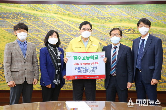 (대한뉴스 김기준 기자)=경주시는 9일 경주고등학교(학생·학부모·교직원 일동)에서 코로나19 극복을 위한 성금 562만 원을 기탁했다고 밝혔다.
