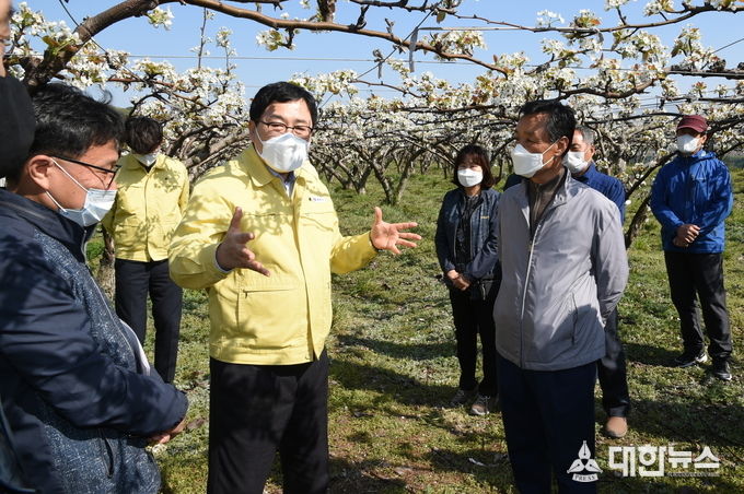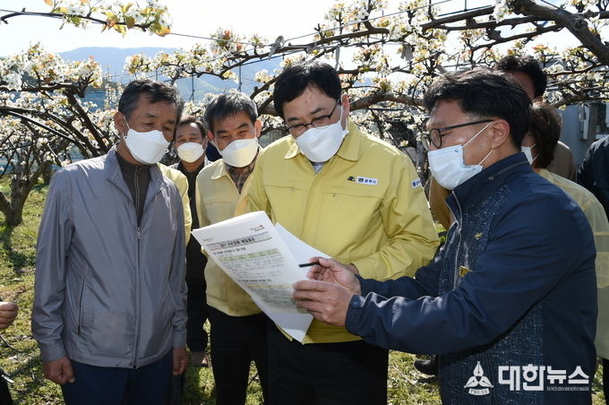 (대한뉴스 김기준 기자)=경주시는 영하의 기온으로 배꽃 저온 피해를 입은 농가의 피해를 최소화 하도록 예비비 4천만 원을 긴급 투입, 농가과수원 400ha에 과수 영양제를 지원키로 했다.