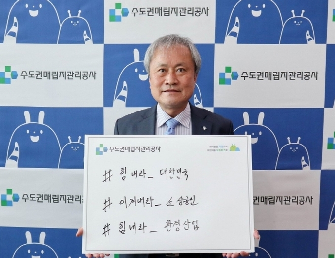 (대한뉴스 한원석 기자)=수도권매립지관리공사 서주원 사장은 17일 한국환경공단 장준영 이사장의 추천을 받아 코로나19 극복을 위한 ‘희망캠페인 릴레이’에 함께했다.