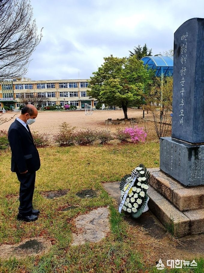 (대한뉴스 김기준 기자)=경북북부보훈지청(지청장 우진수)은 4․19혁명 60주년을 맞이하여 17일(금) 문경 가은초등학교를 방문하여 故안경식 열사 순국추모비 참배를 실시하였다.