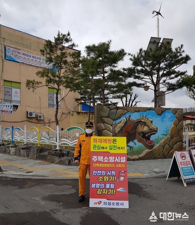 (대한뉴스 김기준 기자)=의성소방서(서장 정창환)는 4월 20일부터 4월 29일까지 8일간 소방서장, 남․여 의용소방대연합회장 등 16명이 의성군청 앞과 군위농협 하나로마트 앞에서 주택용 소방시설 설치촉진을 위한 소방관 「릴레이 1인 홍보 캠페인」을 실시한다고 밝혔다.