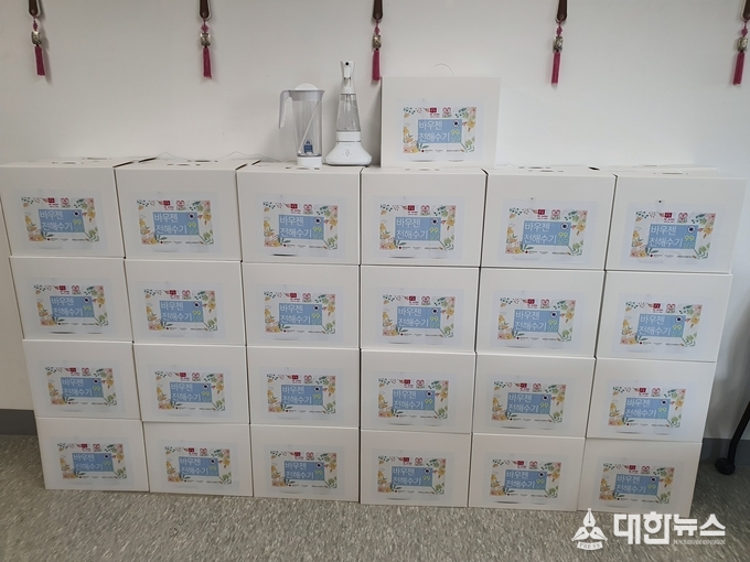 4월 10일.(금), ㈜청담코퍼레이션은 화학제품 없이 수돗물을 빠르게 전기 분해해 살균과 살취가 가능한 물로 변환하는 제품이며 용기에 수돗물을 담아 버튼 하나만 누르면 99% 살균 효과가 소독제를 만들어주는 바우젠 전해수기 듀얼패키지(50대, 1,200만원 상당)를 지원하였다.