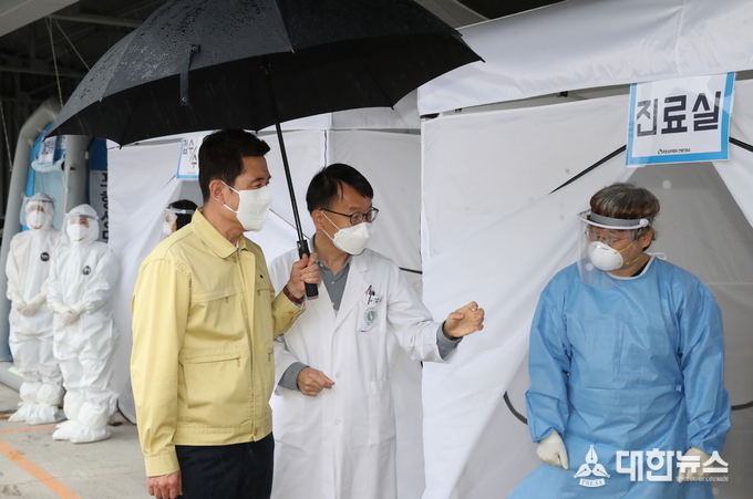 (대한뉴스 김기준 기자)=이강덕 포항시장은 최근 따뜻한 날씨가 이어지면서 일부에서 ‘코로나19’에 대한 경각심이 다소 완화될 수도 있다는 판단 아래, 방역체계 전반에 대한 점검의 일환으로 격리병실을 운영 중인 병원 현장을 찾아 격리병상의 운영과 선별진료소 추진 현황 등을 살펴봤다.