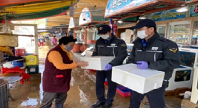 해양경찰청은 코로나19 장기화에 따른 소비 위축으로 어려움을 겪고 있는 어업인과 관련 업계 등을 돕고, 지역경제 활성화에 기여하기 위해 수산물 총 1,269세트(5천 4백여만원)를 구매했다.