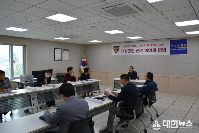 (대한뉴스 김기준 기자)=영주경찰서(서장 류창선)는 21일, 여성청소년과장 주재로 7개 부서 계·팀장들이 참석한 가운데 여성폭력에 대한 선제적 대응 및 피해자 보호·지원 내실화를 위한 ‘여성안전 전략협의체’ 회의를 개최했다.