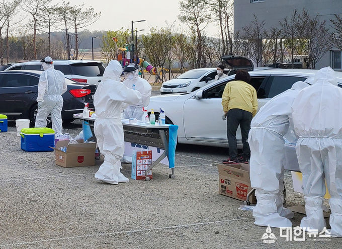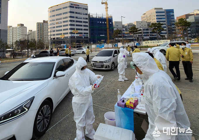 시는 지난 15일부터 18일까지 경북도서관 임시 주차장에 현장임시선별진료소를 설치하고, 보건소 가용 인력을 총동원해 드라이브 스루 방식으로 검진을 하고 검체를 채취했다.