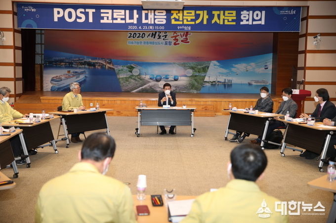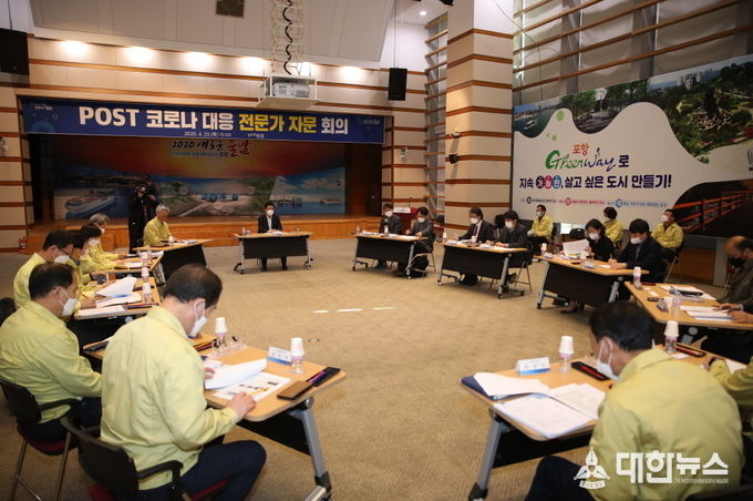 (대한뉴스 김기준 기자)=포항시는 23일, 각 분야별 전문가들이 참석한 ‘포스트(post) 코로나 전문가 자문회의‘를 열고 ‘코로나19’ 사태 이후 어려운 민생의 안정과 지역경제에 활력을 불어넣기 위하여 크고 작은 현안사업들을 차질 없이 추진하여 지역경제 활성화에 총력을 기울이는 한편, 사회·경제적 변화에 대응하기 위한 방안을 논의했다.