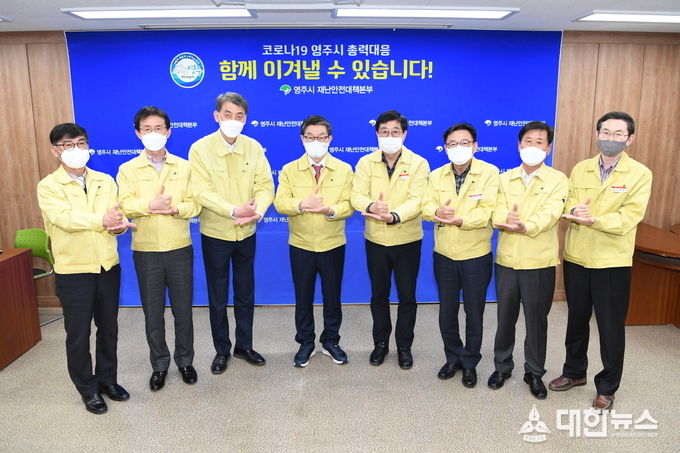 영주시장과 시청직원 10여명은 지난 24일 청사에서 엄지손가락을 편 오른손을 왼손으로 받치는 수어 동작을 함께 취해 의료진들의 노고와 헌신에 존경과 자랑스러움을 표했다.