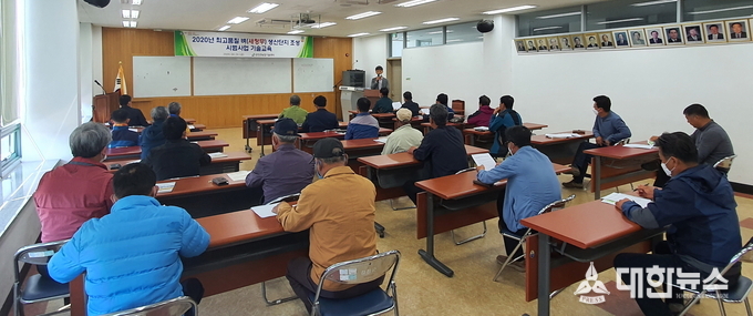 이날 교육은 코로나19로 위축된 사회적 분위기 속에서도 참석 농가 모두 마스크 착용, 간격을 두고 앉기, 손 소독 등 철저한 예방을 실시하며 교육을 진행했다.