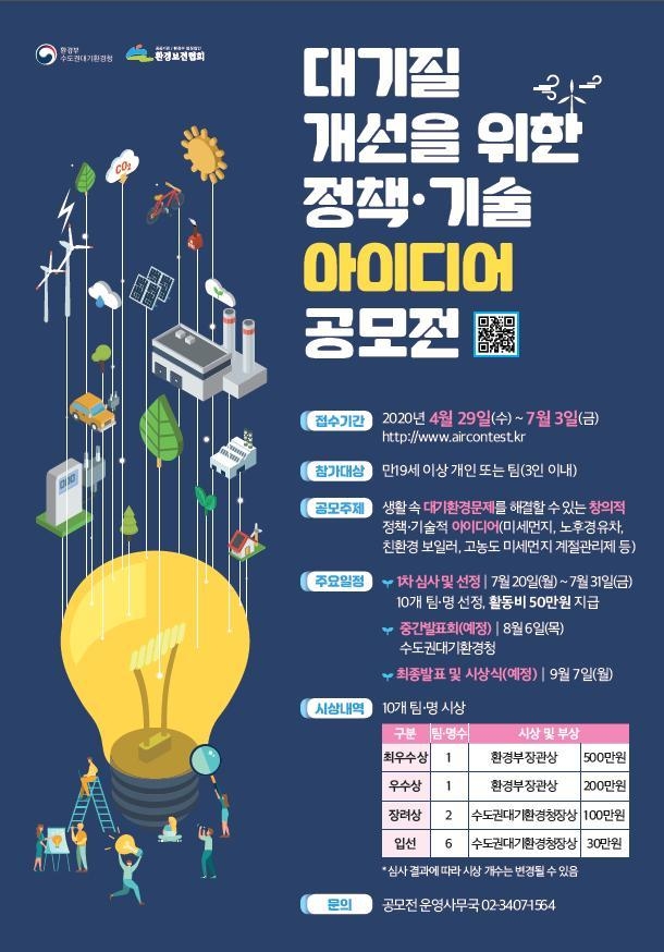 정복영 수도권대기환경청장은 “이번 공모전을 통해 대기오염 해결을 위한 국민들의 참신한 아이디어가 많이 발굴되어 대기질 개선에 실질적인 도움이 될 수 있도록 많은 관심과 참여를 바란다”고 말했다.