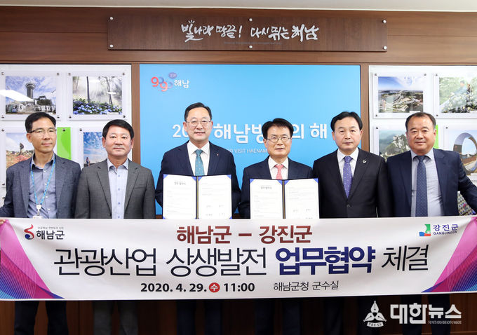 (대한뉴스 박청식 기자)=강진군이 지난 29일 해남군청에서 해남군과 관광산업 상생발전을 위한 업무협약을 체결했다.