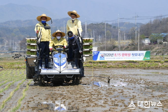 (대한뉴스 김기준 기자)=경북 영주시는 지난 29일 안정면 오계리 황순섭 농가의 논에서 8.15 광복쌀 첫 모내기를 실시했다고 밝혔다.