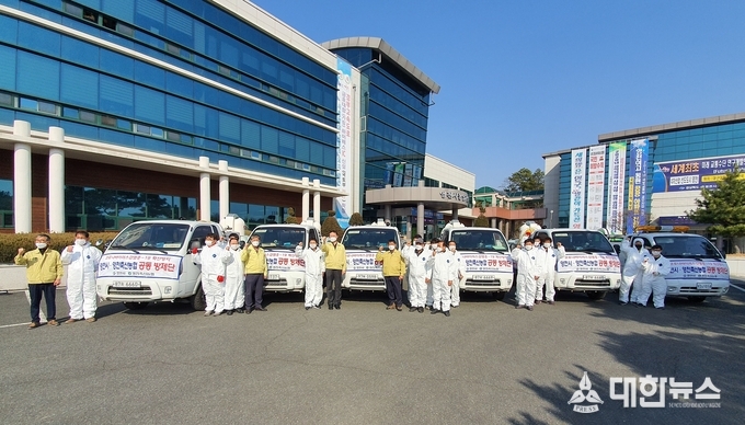 민간단체에서는 영천특전동지회(회장 정용국), 재난안전지킴이 봉사단(회장 설동석), 영천시 새마을회(회장 유석권), 전국한우협회 영천시지부(최종효 지부장) 등에서 소독장비를 들고 자발적으로 방역에 참여했다.