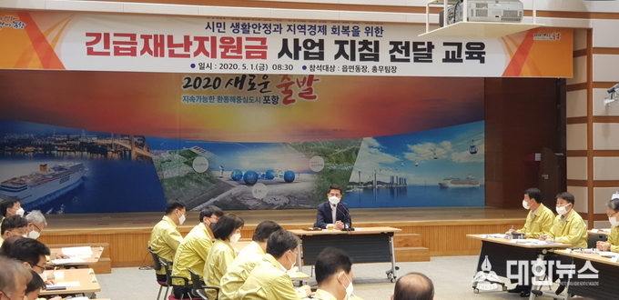 (대한뉴스 김기준 기자)=포항시는 1일, 긴급 재난지원금을 신속히 지급하기 위한 ‘긴급재난지원금 지급 사전준비회의’를 개최했다.