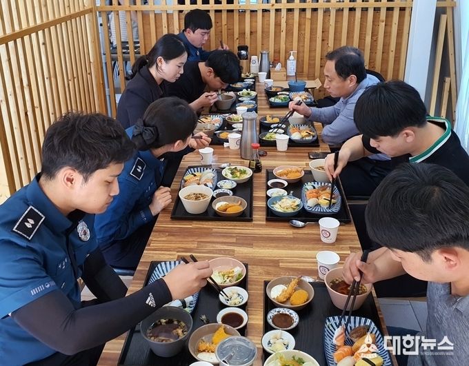 (대한뉴스 김기준 기자)=영주경찰서(서장 류창선)는 7일 경찰서 인근 식당에서 경찰서장과 정규임용된 신임 순경 7명이 참석한 가운데 오찬 간담회를 가졌다.