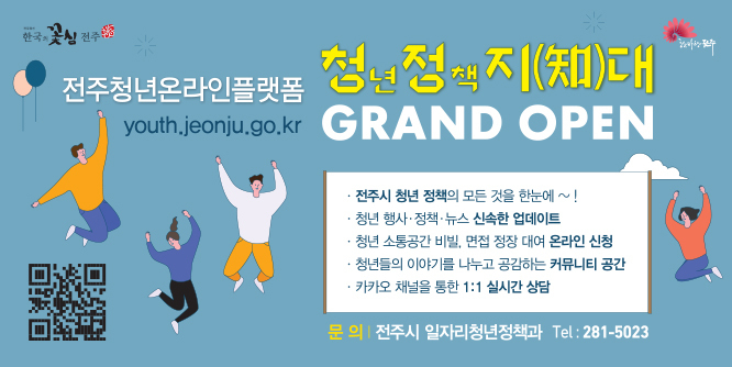 전주시 신성장경제국 관계자는 “온라인플랫폼을 통해 지역 내 청년들이 자신에게 꼭 필요한 정보를 최대한 쉽게 접할 수 있게 함으로써 더 이상 청년정책을 몰라 혜택을 받지 못하는 청년이 없도록 홍보를 강화해 나갈 것”이라며 “수혜 대상이 한정돼 있었던 기존과는 달리 전주시 청년들의 삶이 묻어나는 소통의 공간으로 만들어 나가겠다”고 말했다.