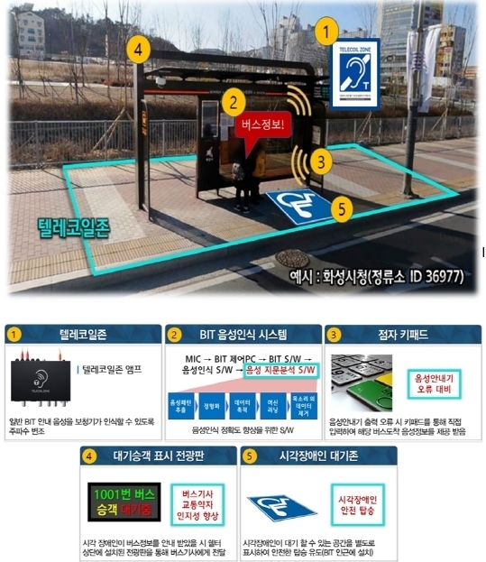 텔레코일존은 보청기가 안내 음성을 상세히 인식할 수 있도록 주파수를 변조해준다. 정류소 상단에는 디지털 전광판을 설치해 교통약자의 대기상황을 알려준다. 이를 통해 교통약자는 정류소에서 손쉽게 버스 도착정보를 알게 되고, 버스기사는 이들의 대기정보를 미리 전달받을 수 있다. 특히, 대기 공간도 별도로 마련해 안전한 탑승을 도울 수 있도록 했다.