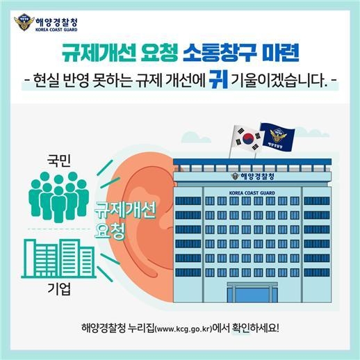 (대한뉴스 한원석 기자)=해양경찰청(청장 김홍희)은 개선 필요성이 있는 규제에 대해 국민과 기업의 목소리를 듣는 소통 창구를 누리집에 마련했다고 12일 밝혔다.